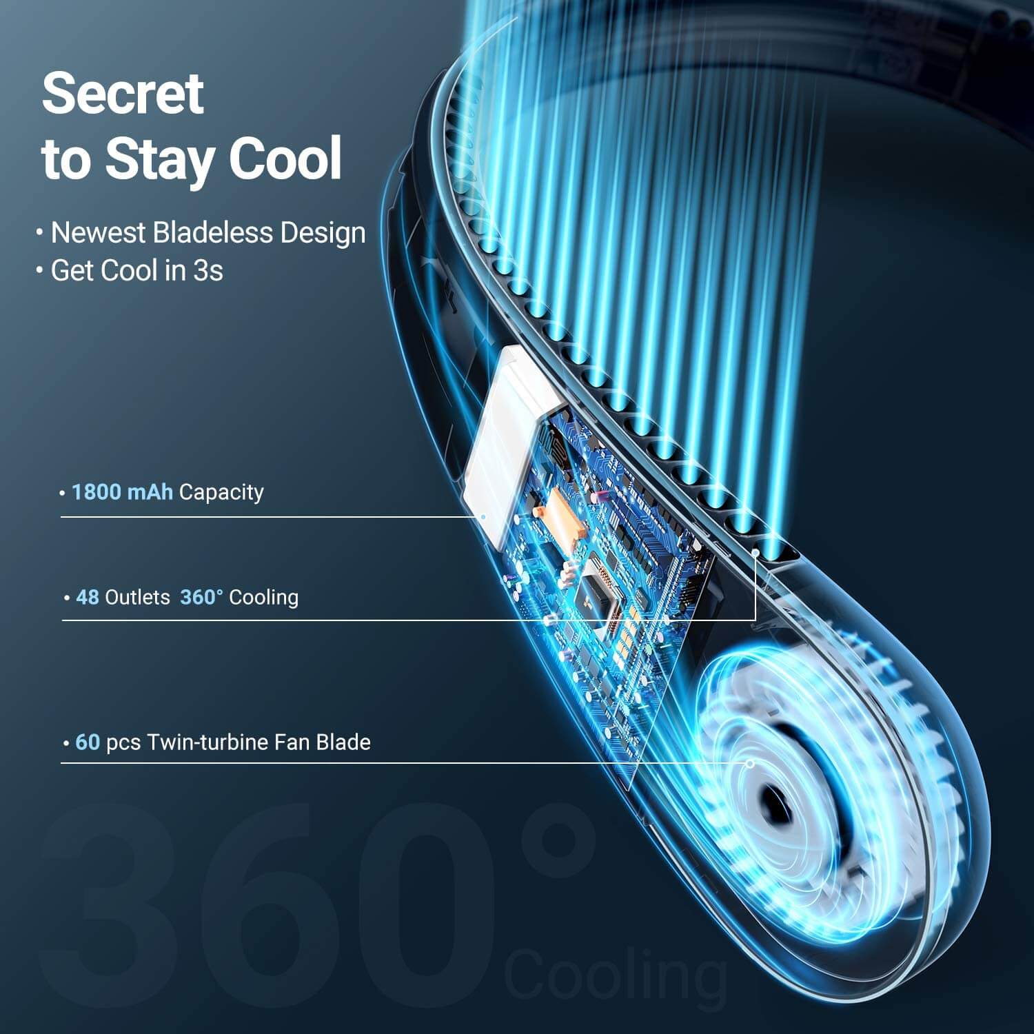 Portable Neck Fans 360° Cooling Neck Band Battery Operated Fans